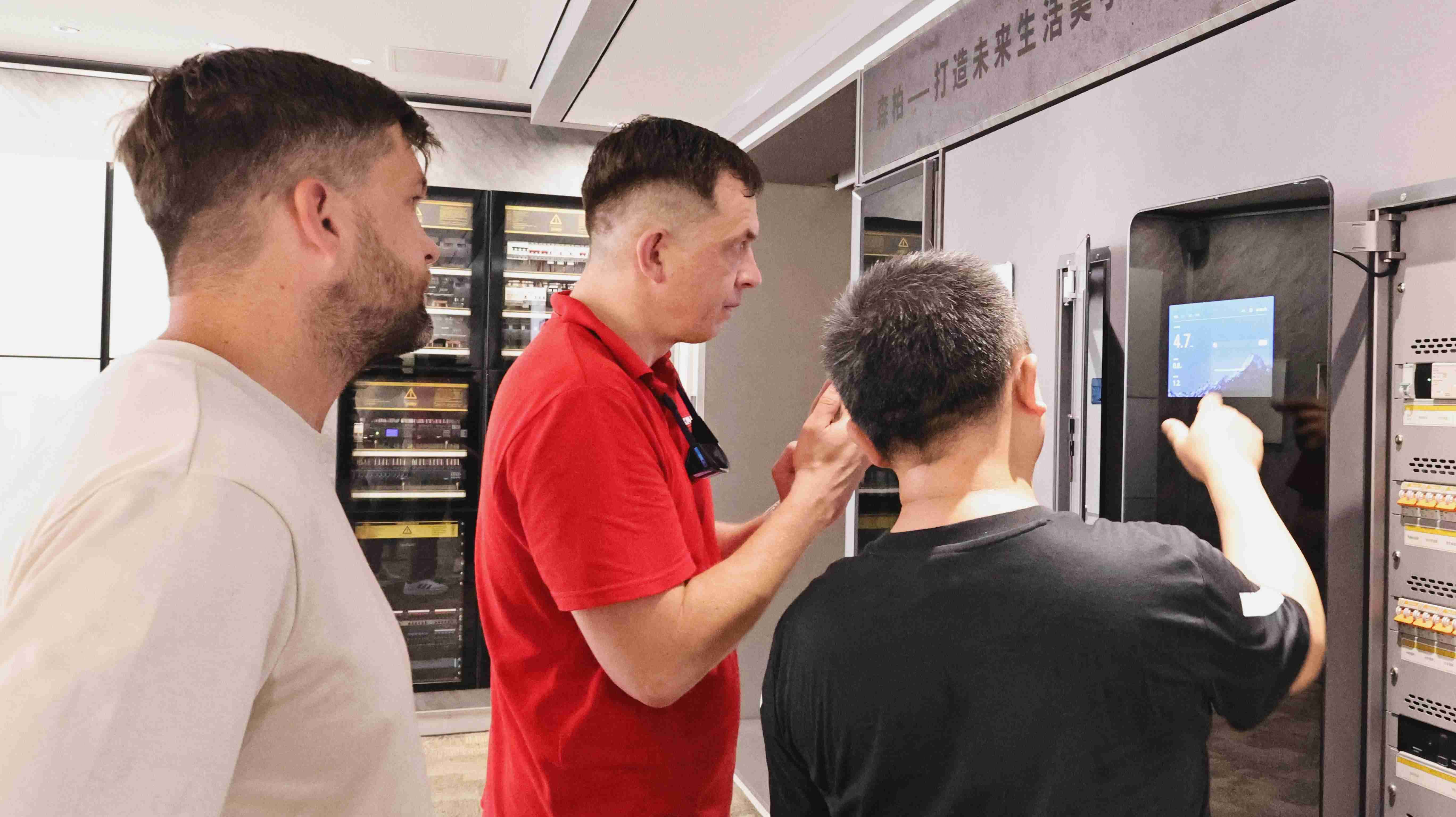 在總經(jīng)理的陪同下,VDKplus公司代表走進展廳與車間,近距離觀看瑪徳克全系列產品與技術應用案例,雙方對國內與俄羅斯市場電氣標準差異、高端場景個性化需求、智能化配電趨勢等話題展開了討論。